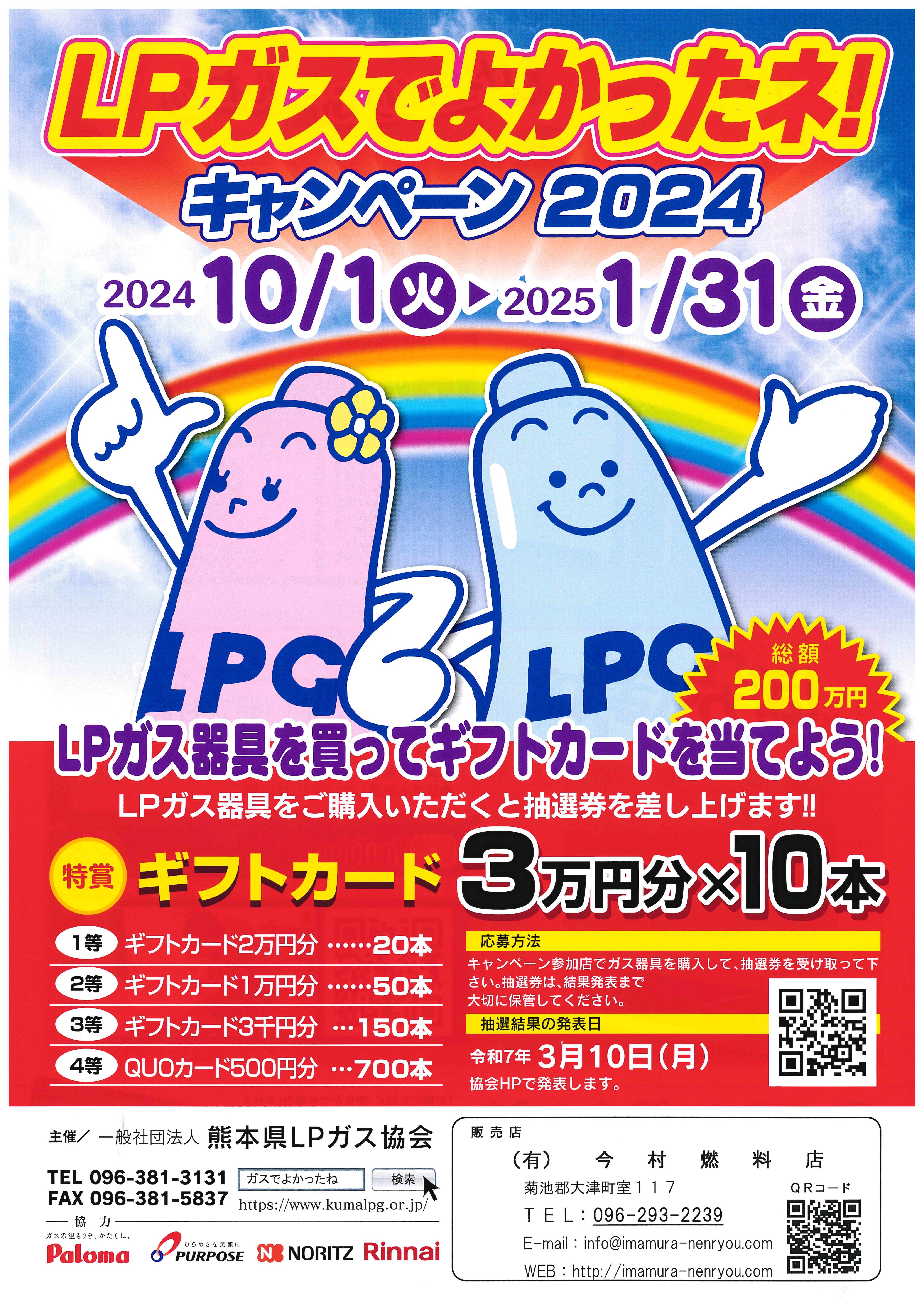 LPガスをご購入いただくと抽選券を差し上げます!!