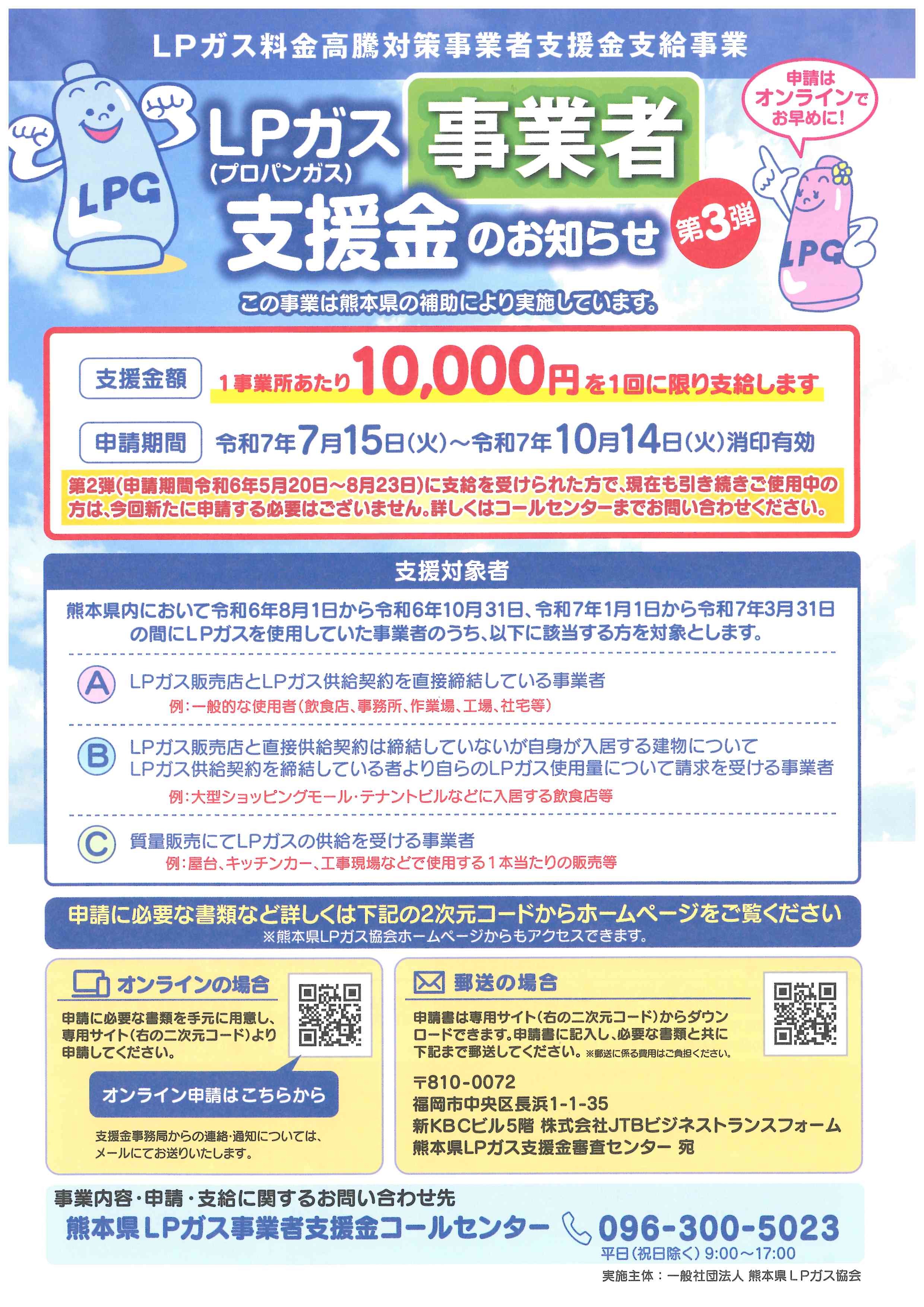 LPガスを利用している事業者様を対象に支援金が支給されます。